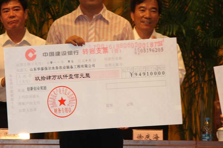 2011年5月28日上午,濟(jì)南高新區(qū)舉行創(chuàng)新創(chuàng)業(yè)發(fā)展獎(jiǎng)勵(lì)大會(huì),對(duì)2010年度涌現(xiàn)出的重大科技成果、優(yōu)秀創(chuàng)新創(chuàng)業(yè)人才和貢獻(xiàn)突出企業(yè)進(jìn)行表彰獎(jiǎng)勵(lì)。華泰保爾榮獲創(chuàng)新創(chuàng)業(yè)企業(yè)大獎(jiǎng),是對(duì)企業(yè)的最大的肯定和認(rèn)可。