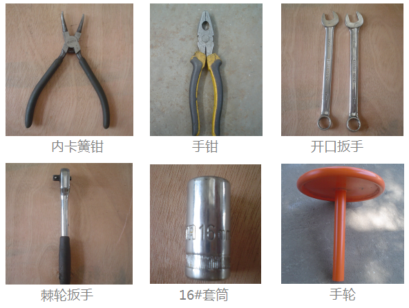 所需工具:內(nèi)卡簧鉗、手鉗、17#、18#開口扳手、16#套筒、棘輪扳手,手輪 |