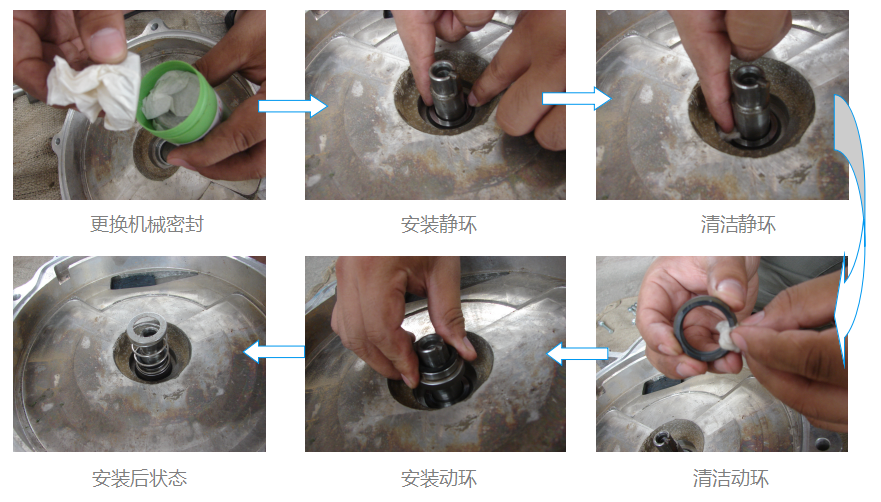 裝入機(jī)械密封靜環(huán)及動(dòng)環(huán)(動(dòng)、靜環(huán)兩端面必須保持清潔)
