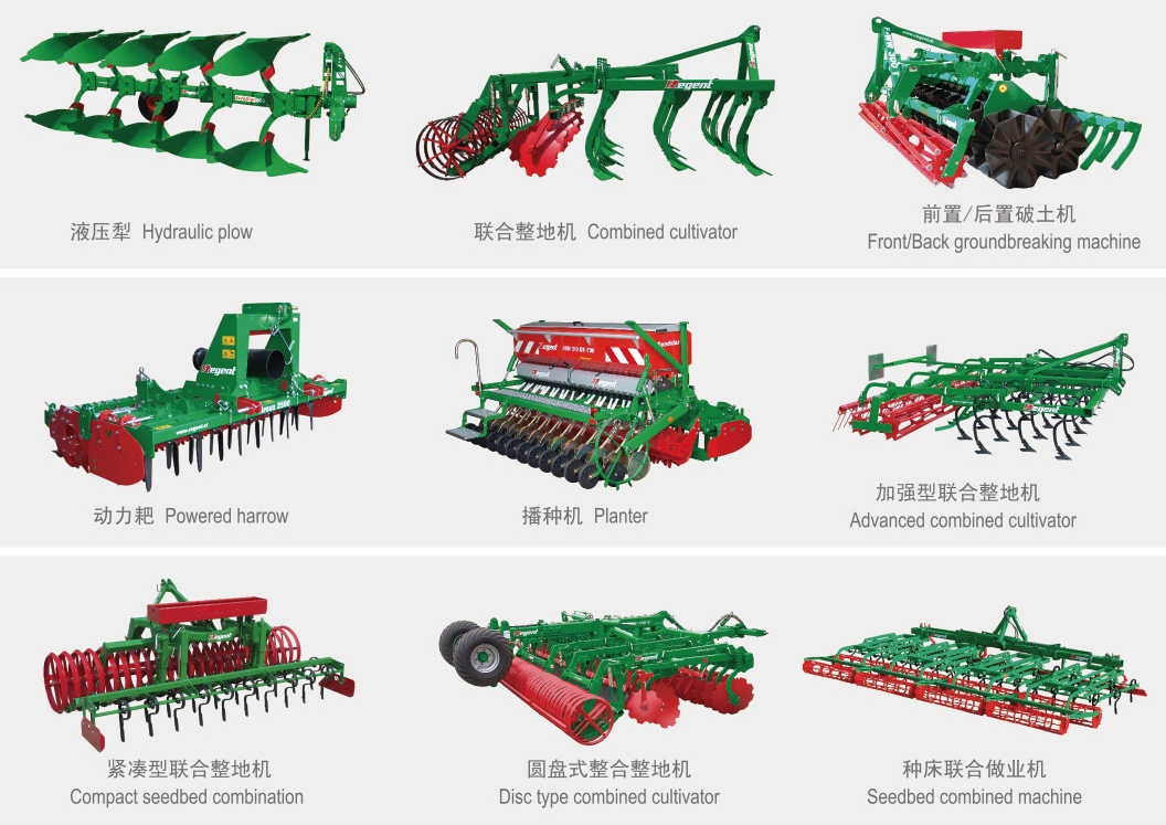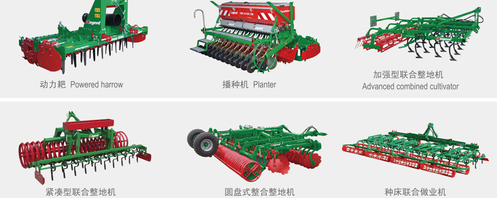 主要產(chǎn)品:翻轉(zhuǎn)犁、動(dòng)力耙、聯(lián)合整地機(jī)、播種機(jī)。