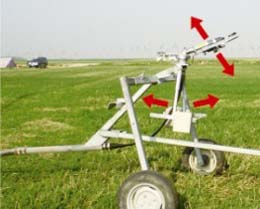 | 保護(hù)農(nóng)作物平衡機(jī)構(gòu) 即使是在凹凸不平的地面上,噴水行車的平衡機(jī)構(gòu)已能自動(dòng)調(diào)整并保證正確的灌溉角度, 從而保護(hù)農(nóng)作物。 |